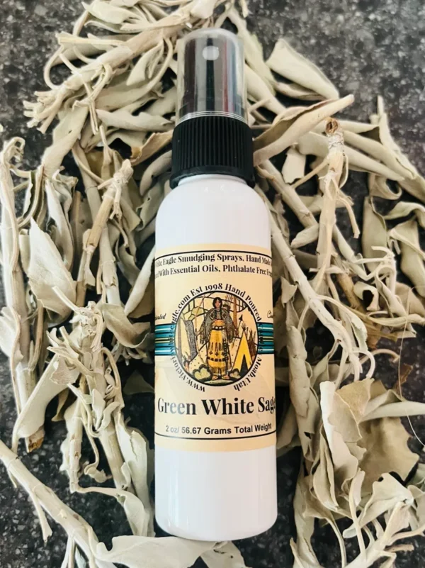 A New Fresh Green White Sage Scent, Infused With Essential Oils. 1 Each 2.oz, travel size A hand made alcohol free, non aerosol base infused with a shamanistic blend of White Sage (Salvia apiana), Salvia officinalis) Rosemary Essential Oils and Fragrance Oil. The natural base is a combination of Certified Organic Aloe vera, Witch Hazel with a vegetable base preservative. Usually last up to 2 years if not kept in a hot sunny environment. (Do to plastic becoming thinner from the manufacturers I’ve upgraded to an aluminum bottle which is great for recycling. )
