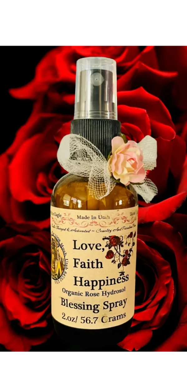 Introducing the Love. Faith. Happiness Organic Rose Hydrosol Spray 2.0 oz Blessing Spray – a divine infusion of nature’s purest essence designed to uplift your spirit and radiate positive energy. This extraordinary product, found exclusively at our metaphysical store, promises to envelop you in a blissful aura of love, faith, and happiness. Crafted with utmost care, our Love. Faith. Happiness Organic Rose Hydrosol Spray is made from the finest, organically grown roses, harvested at the peak of their floral potency. Each delicate petal is carefully distilled to extract the precious rose hydrosol, renowned for its soothing and rejuvenating properties. The elegant bottle, adorned with the image of vibrant red roses, exudes a sense of romance and warmth. It perfectly encapsulates the essence of love and faith, making it an ideal gift for loved ones or a sacred addition to your personal collection. This enchanting spray is much more than a fragrant mist; it is a tangible blessing that can transform any space into a sanctuary of tranquility and positivity. With just a gentle spritz, the captivating aroma of roses fills the air, enveloping you in a comforting embrace. As the mist settles, it leaves behind an ethereal atmosphere